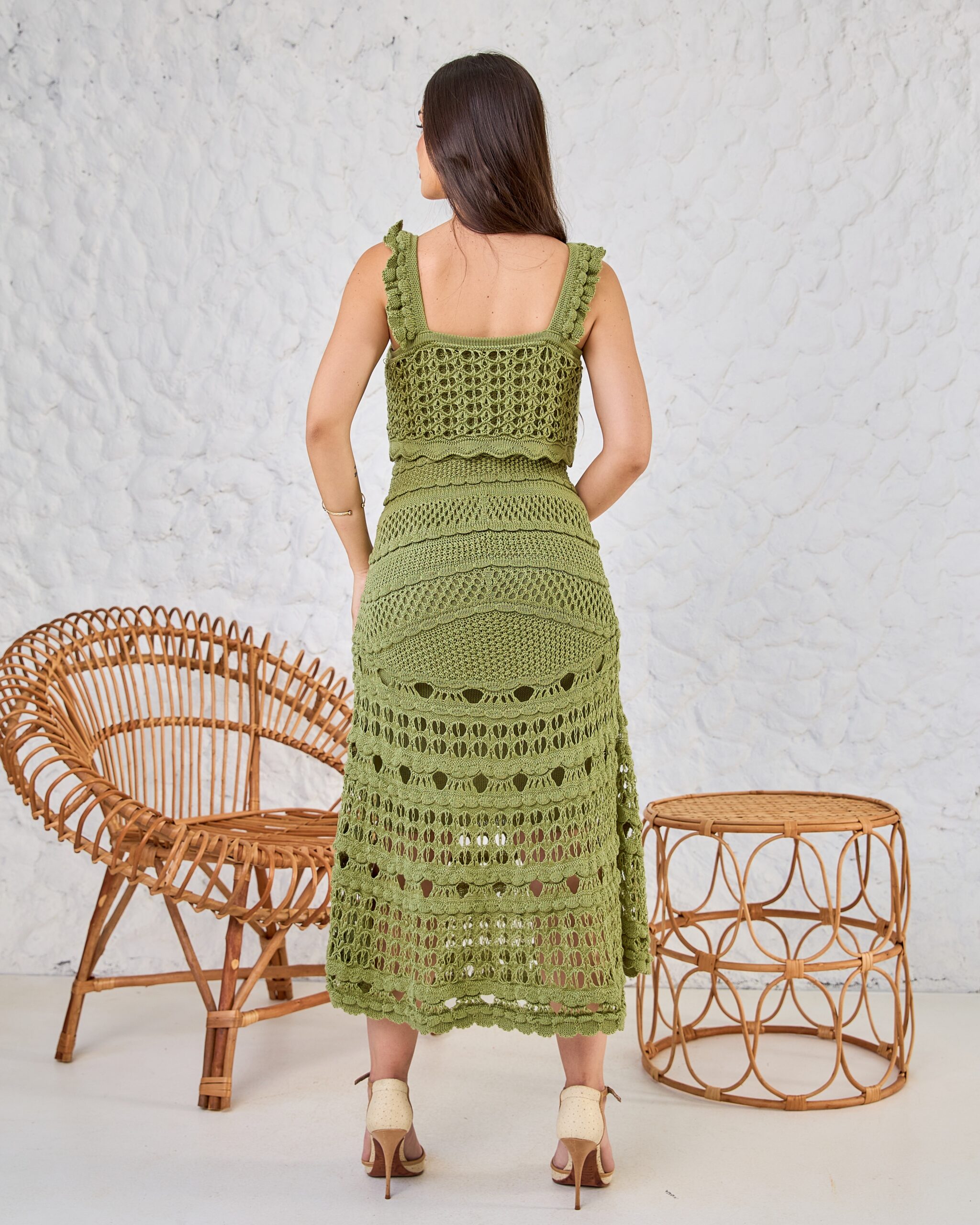 O Vestido Ravena Midi em Tricot Rendado une sofisticação, feminilidade e versatilidade em um design atemporal. Visto que suas tramas trabalhadas criam um visual rico em textura, a peça remete ao crochê artesanal com acabamento contemporâneo.