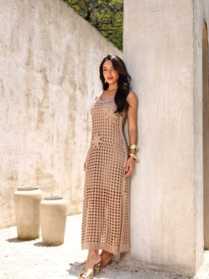 O Vestido Tela Bali Longo em Tricot traduz, sem dúvida, sofisticação atemporal com uma estética moderna. Visto que seu design se destaca pelas tramas que simulam tela em crochê, ele cria um visual leve, refinado e extremamente feminino. Dessa forma, valoriza a textura e o trabalho artesanal do tricot.
